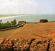 imposing fort lies the shallow beach,quite the lotus-eater's